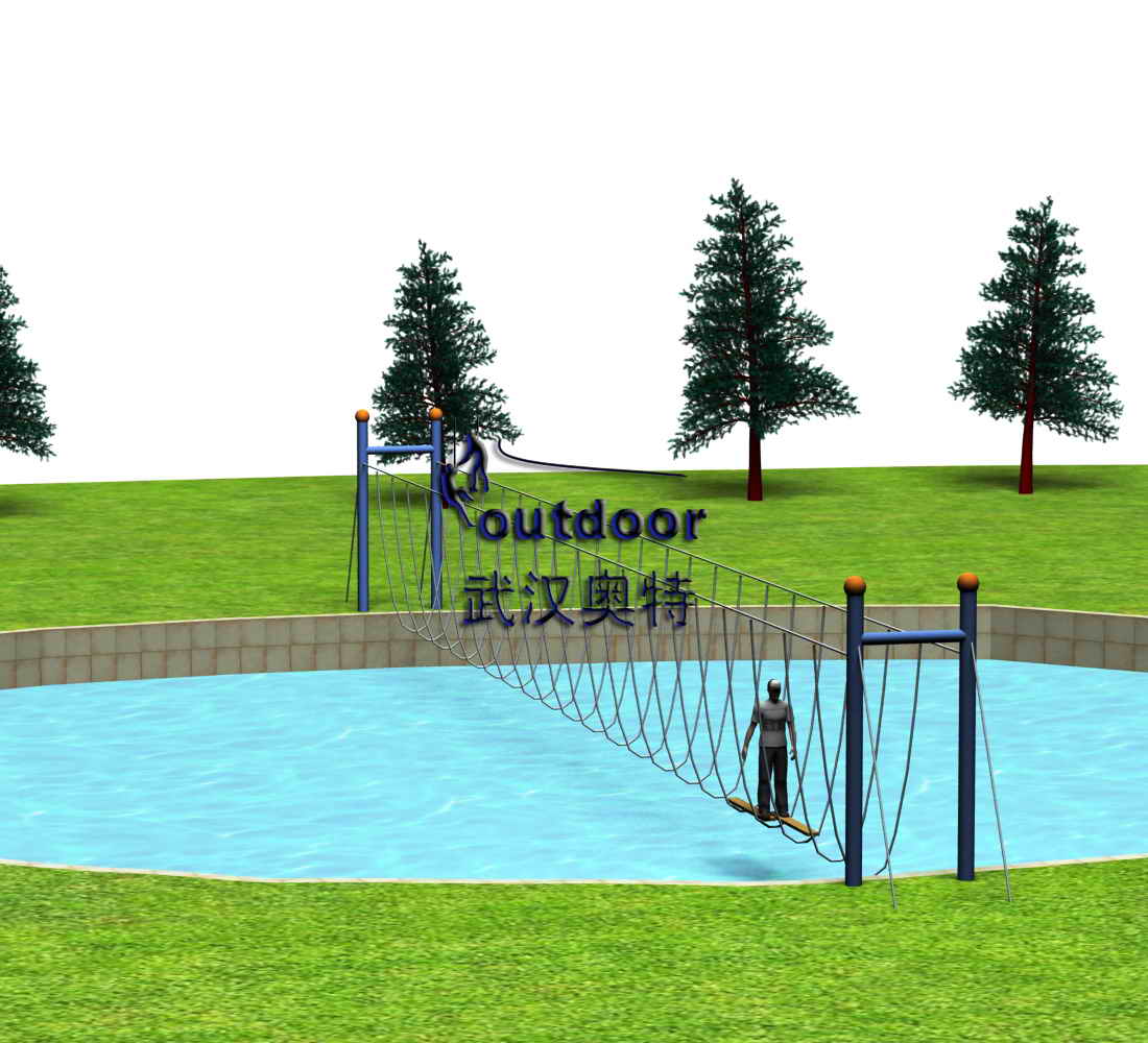 探險器材產品介紹:參與者需要通過兩塊木板,穿越垂吊鋼纜的趣味橋。
