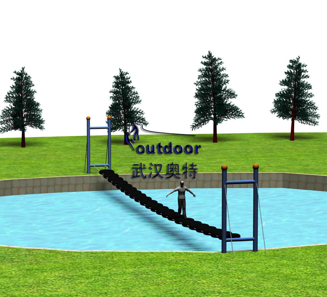 探險器材產品介紹:水面上利用輪胎架設的狹窄橋面,你有勇氣穿越過去嗎!