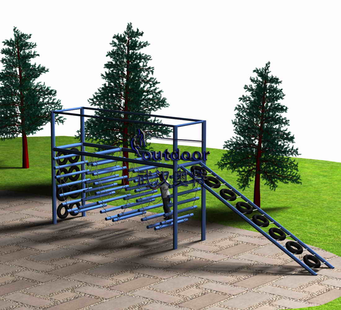 探險器材產品介紹:輪胎攀爬與吊樁橋的結合,需要良好身體素質