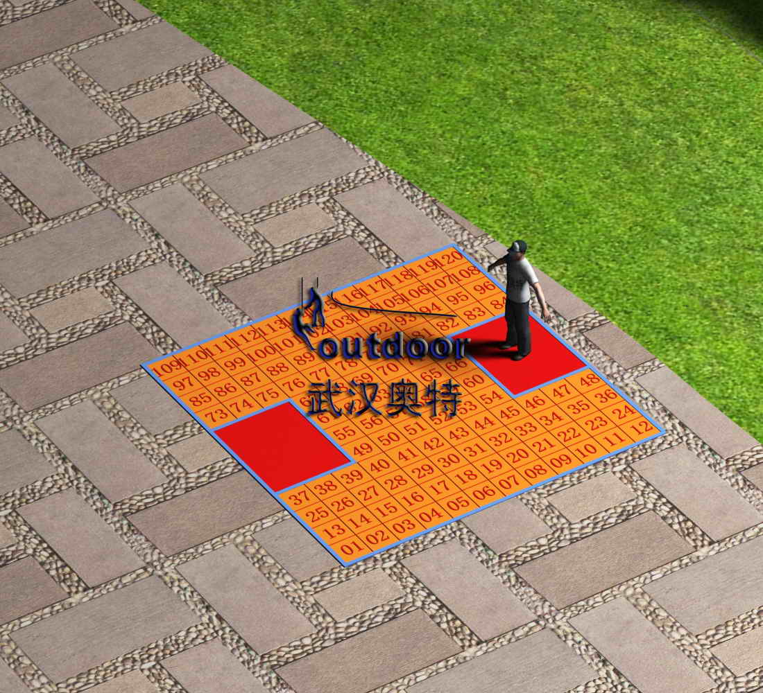 每次只能有一人進入雷區,其他人員站在雷陣圖進口一側,每次只能向相鄰的格子任意移動一步。每移動一步,若教練宣布有雷則必須按原路返回。同一個有雷點只準踩一次。不準在雷陣圖上做永久性記號。在項目操作過程中教練將不回答任何問題。