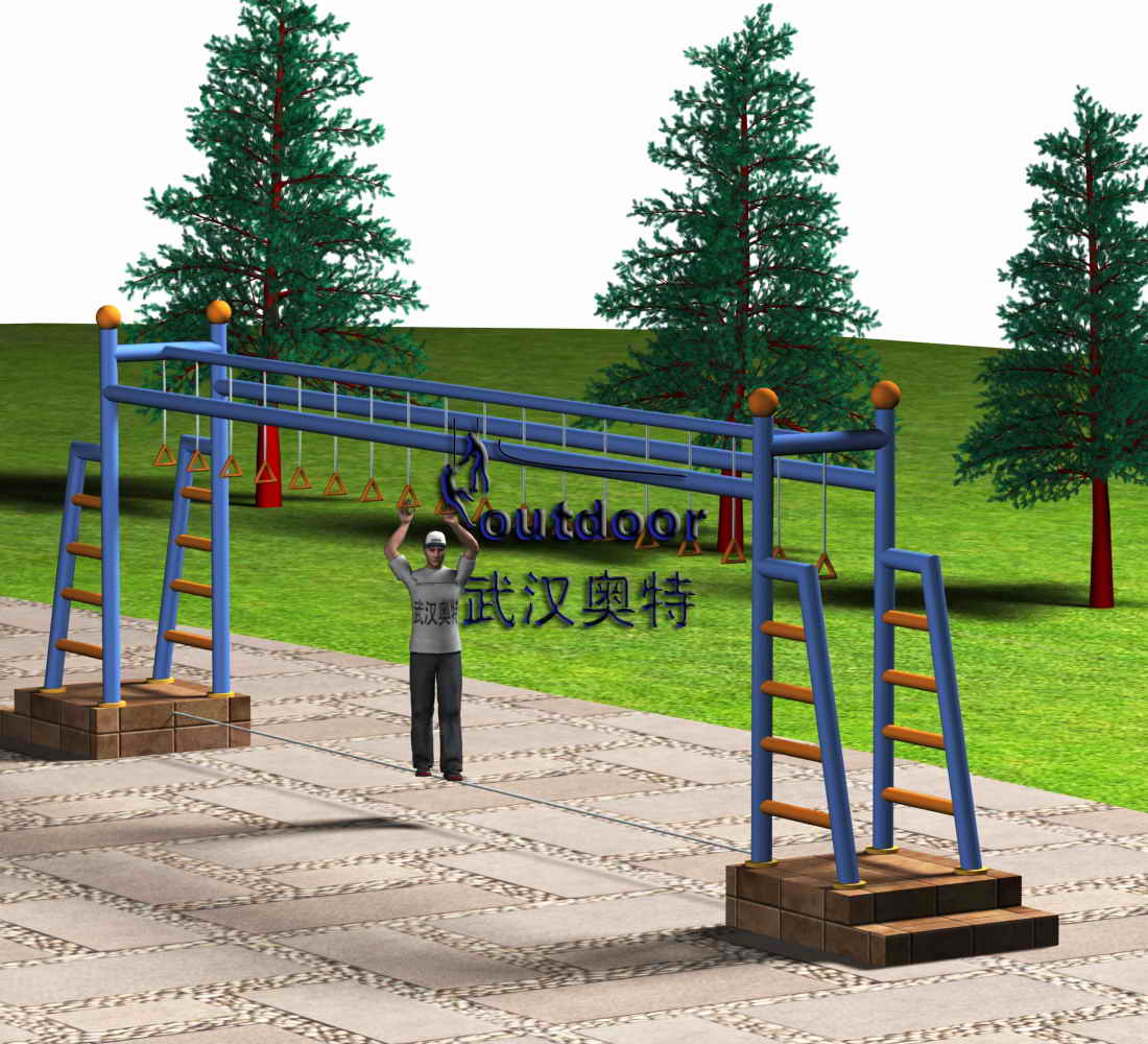 低空探險娛樂器材:低空手吊環橋